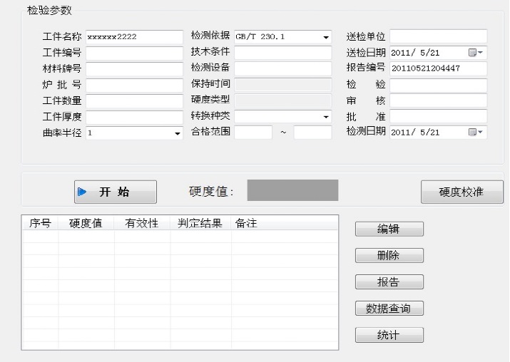 8、數據處理功能強大,包括:HR、HB、HV等多種硬度制式轉換,設置合格范圍,超限自動報警,可輸入測試員,樣品名稱等信息。自動生成檢驗報告。
