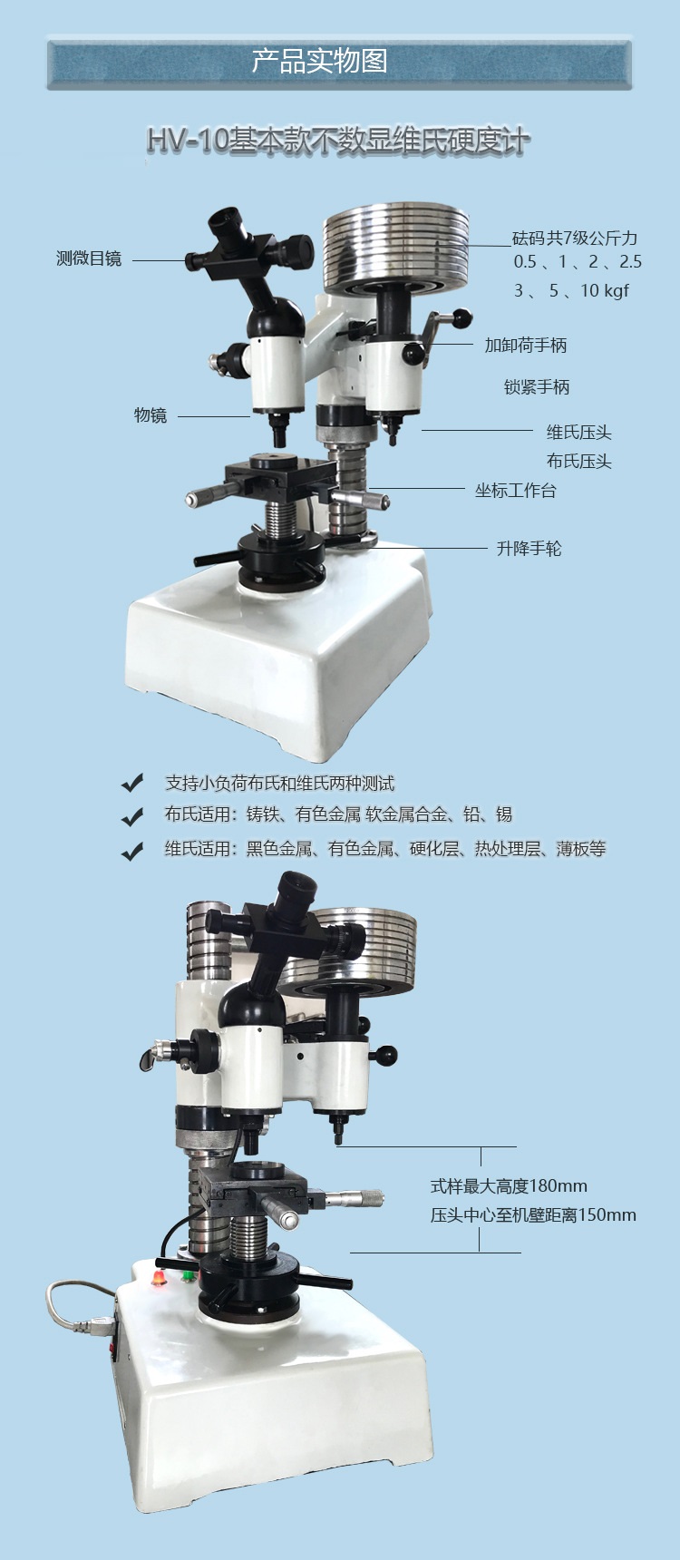 該機適用于機械、冶金、國防、科研及大專院校等部門的熱處理車間及試驗室進行維氏、布氏硬度試驗。