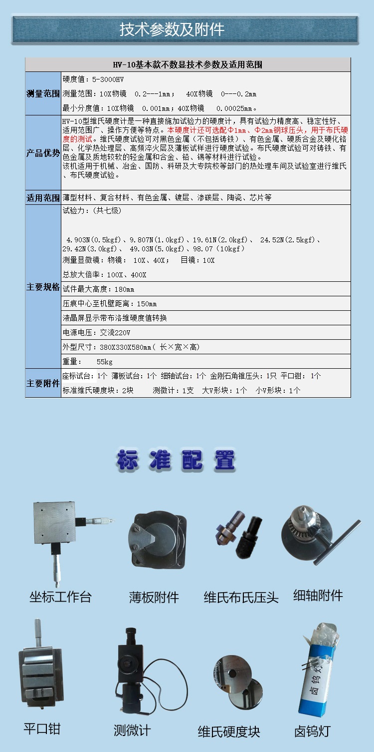 座標試臺:1個 薄板試臺:1個 細軸試臺:1個 金剛石角錐壓頭:1只 平口鉗: 1個