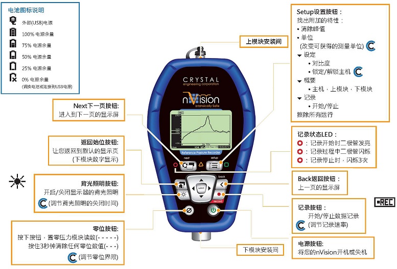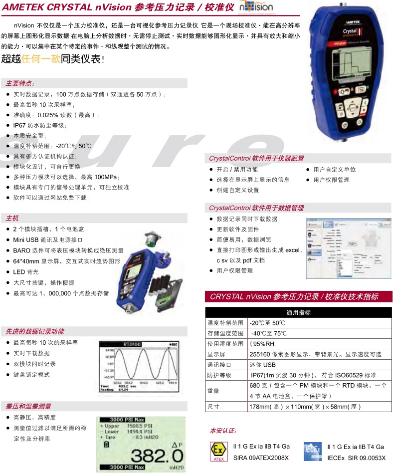 nVision參考壓力記錄/校準儀不僅僅是一個壓力校準儀,還是一臺可視化參考壓力記錄儀它是一個現(xiàn)場校準儀·能在高分辨率的屏幕上圖形化顯示數(shù)據(jù)·在電腦上分析數(shù)據(jù)時·無需停止測試·實時數(shù)據(jù)能夠圖形化顯示·并具有放大和縮小的能力·可以集中在某個特定的事件·和縱觀整個測試的情況.它超越任何一款同類儀表!